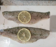 Filety mořského vlka osolíme a lehce zaprášíme hladkou moukou. Vlka opečeme na pánvi na rozpuštěném másle nejprve kůží dolů. Občas filetky přelijeme horkým máslem.