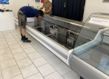 Nejprve jsme zvažovali, zda tak dlouhou vitrínu na prodejnu vůbec dostaneme. Po konzultaci s naším spolupracovníkem přes chlazení jsme dospěli k názoru, že jsme šikovní a určitě si poradíme. Chladící vitrína byla před měsícem objednána, a ve čtvrtek 17.6. nastal den D. Vitrína byla v Ostravě předána dopravci a putovala napřímo do Týnce nad Sázavou.